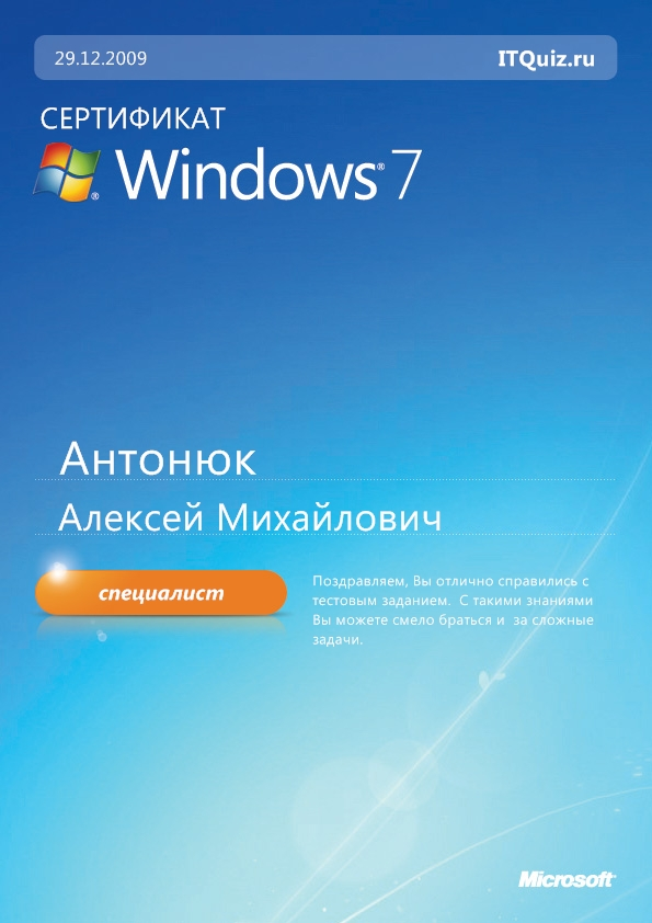 Специалист Windows 7 (Простой тест)Специалист Windows 7 (Простой тест)